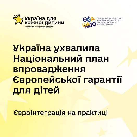Сьогодні, 20 листопада, Україна вперше офіційно відзначає Всесвітній день дитини разом з усім світом, відповідно до Указу Президента України. Цей день – нагадування про нашу відповідальність перед дітьми. Дорослі повинні робити все можливе, аби навіть під час війни, захистити право дітей на безпеку, розвиток і щасливе дитинство. Почути, підтримати, створити гідні умови для життя. З нагоди Дня захисту дітей Уряд ухвалив Національний план реалізації Європейської гарантії для дітей – рамковий документ, який об’єднує під однією «парасолькою» державні, місцеві та міжнародні зусилля. Що таке Європейська гарантія і чому вона важлива? Європейська[…Читати далі…]