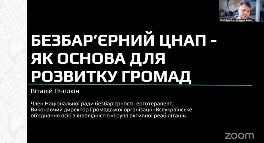 🎤 Спікером заходу виступив Віталій Пчолкін — виконавчий директор ГО «Група активної реабілітації», член Національної Ради безбар’єрності, консультант з питань доступності та автор проєкту «ІнваФішки».