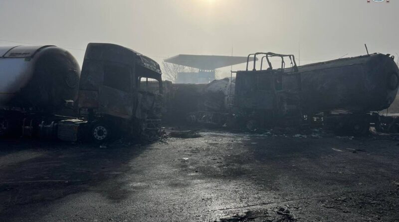 Внаслідок атаки пошкоджено 5 вантажних автомобілів на відкритій автостоянці: 4 з них були порожніми, ще один – зерновоз із вантажем сої.