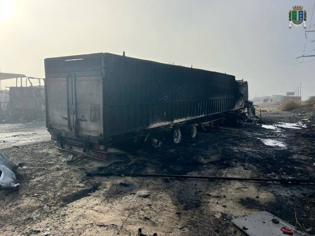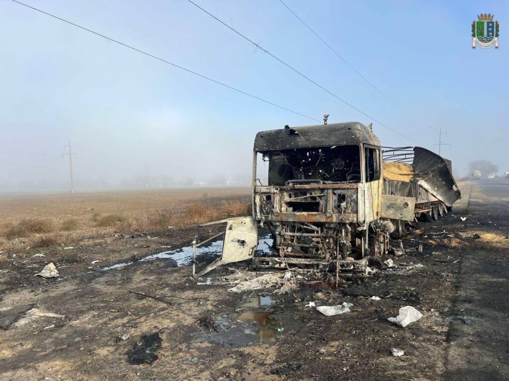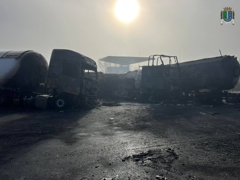 Внаслідок удару спалахнули 5 вантажних автомобілів, пожежу оперативно ліквідували рятувальники.