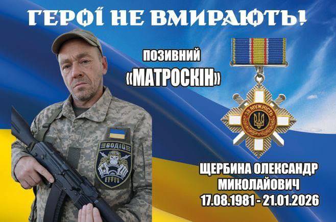 З глибоким сумом повідомляємо про ще одну непоправну втрату для нашого району. Захищаючи Україну, її свободу та незалежність, загинув наш земляк, мешканець села Матроска Саф’янівської громади Олександр Миколайович Щербина. Олександр проходив військову службу за призовом. Він був стрільцем 1 мотопіхотного відділення 2 мотопіхотного взводу 1 мотопіхотної роти мотопіхотного батальйону. Вірний військовій присязі та українському народові, мужньо виконував свій військовий обов’язок. 21 січня 2026 року під час виконання бойового завдання в районі села Новоселівка Краматорського району Донецької області життя нашого земляка трагічно обірвалося внаслідок мінометного обстрілу. Ізмаїльська районна державна адміністрація висловлює[…Читати далі…]