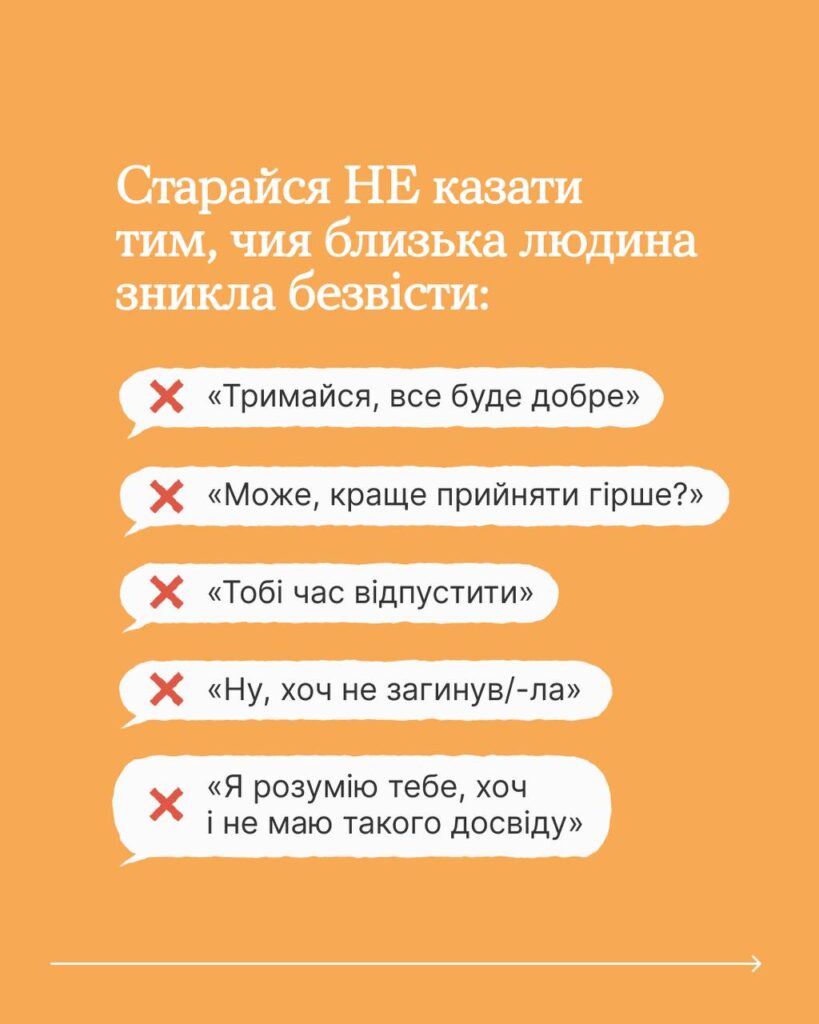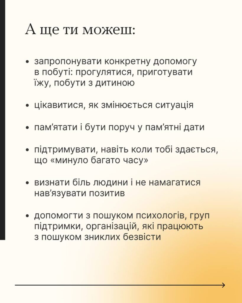 Коротко нагадуємо про те, як підтримати тих, у кого близька людина зникла безвісти.