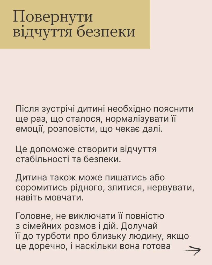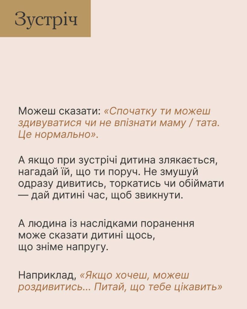Гортай карусель із рекомендаціями від «Ти як?» та психологині Світлани Ройз, щоб зробити першу зустріч близьких після поранення теплішою і безпечнішою 👉