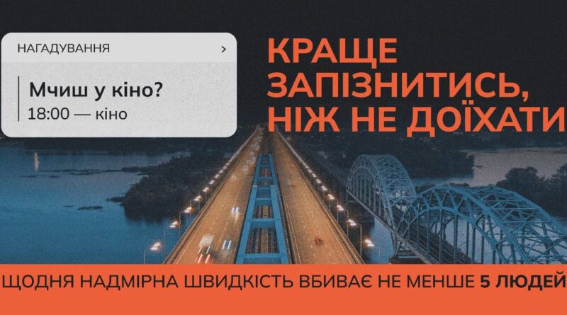 ❗️55% смертей на дорогах стаються через перевищення швидкості. Мета кампанії – нагадування українським водіям, що дотримання обмежень швидкості суттєво зменшить кількість ДТП, а відповідно і кількість смертей та травм на українських дорогах.Дотримуючись швидкісногорежиму, водії можуть врятувати власне життя та життя інших учасників дорожнього руху. Жодна зустріч чи робочий графік не варті ризику втрати власного життя чи життя дитини. Учасників дорожнього руху закликають пам’ятати про особисту відповідальність та дотримуватися безпечного швидкісного режиму.