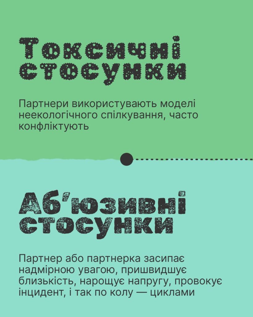🚩 Аб’юзивні стосунки завжди про владу, контроль та шкоду. Їх не можна змінити, а варто завершувати (може знадобитися безпечний план виходу з таких стосунків).