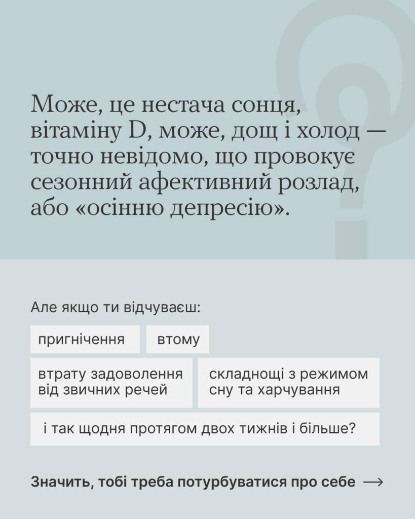Коли дні стають коротші, а настрій знижується разом із температурою повітря, гортай карусель, щоб не впасти у сезонну депресію 👋👉