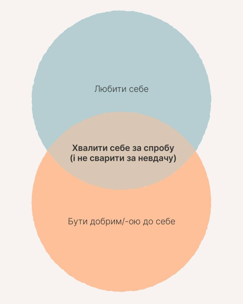 Головне — не зупиняйся. Продовжуй планувати і пробувати різне. Справжні бенефіти від турботи про себе зазвичай просто не поміщаються в кола чи їхні перетини 😉