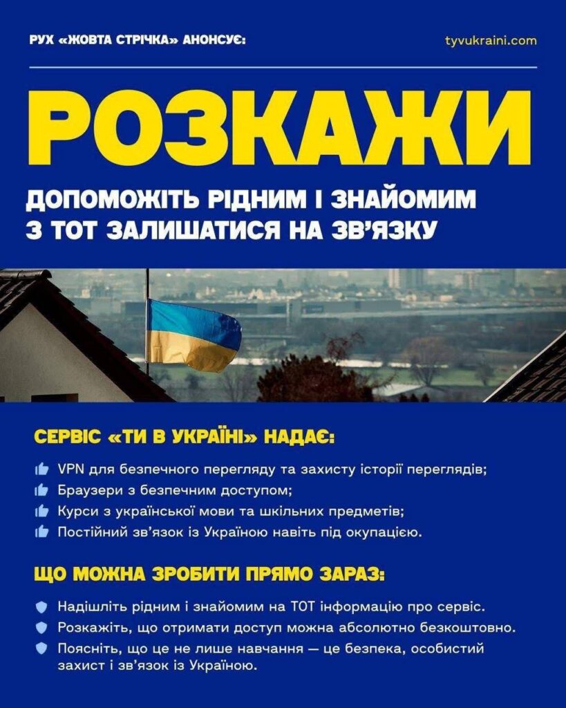 📌Маєте знайомих і родичів в окупації — передайте їм це посилання: https://tyvukraini.com/
