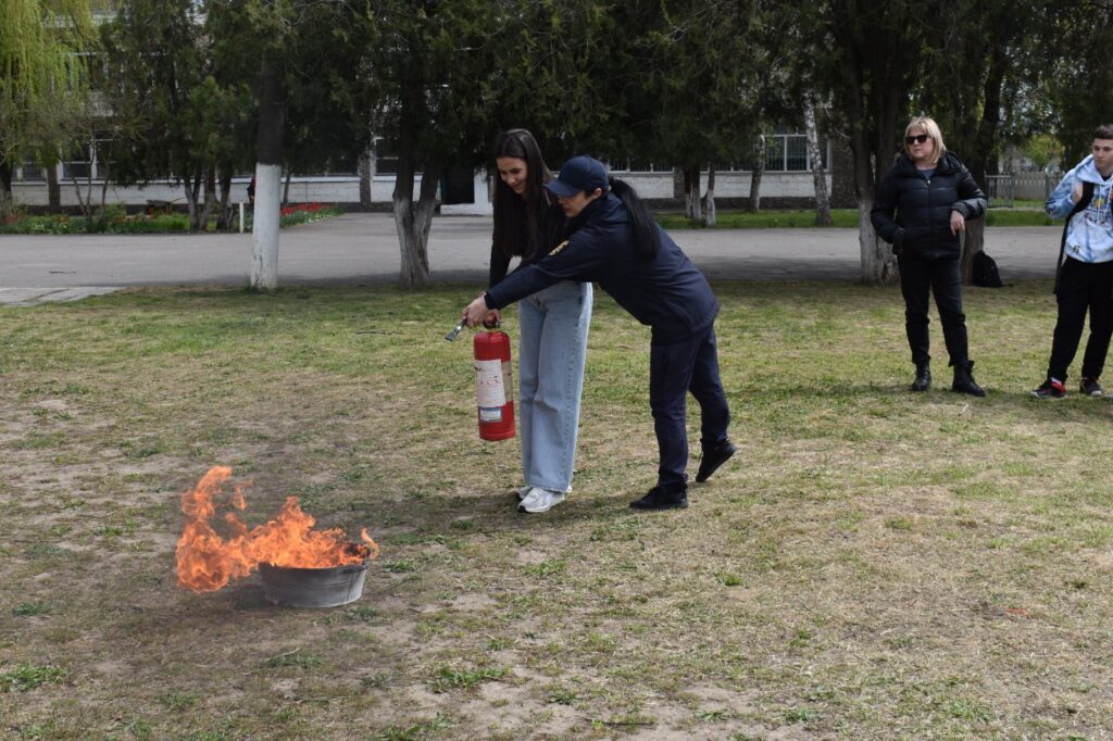 Під час заходу фахівці ДСНС розповіли про основні причини виникнення пожеж, наголосили як запобігти їх виникненню, відпрацювали правильні дії під час виникнення пожежі, ознайомилися з принципом будови та дії порошкового вогнегасника, а потім закріпили теоретичнв знання практично:кожен бажаючий скориставсявогнегасником і загасив умовну пожежу.