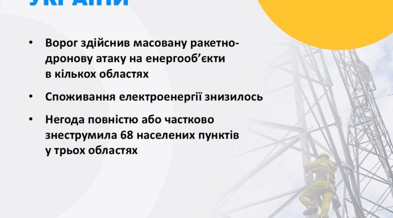 🔹Ворог здійснив масовану ракетно-дронову атаку на енергооб’єкти у кількох областях