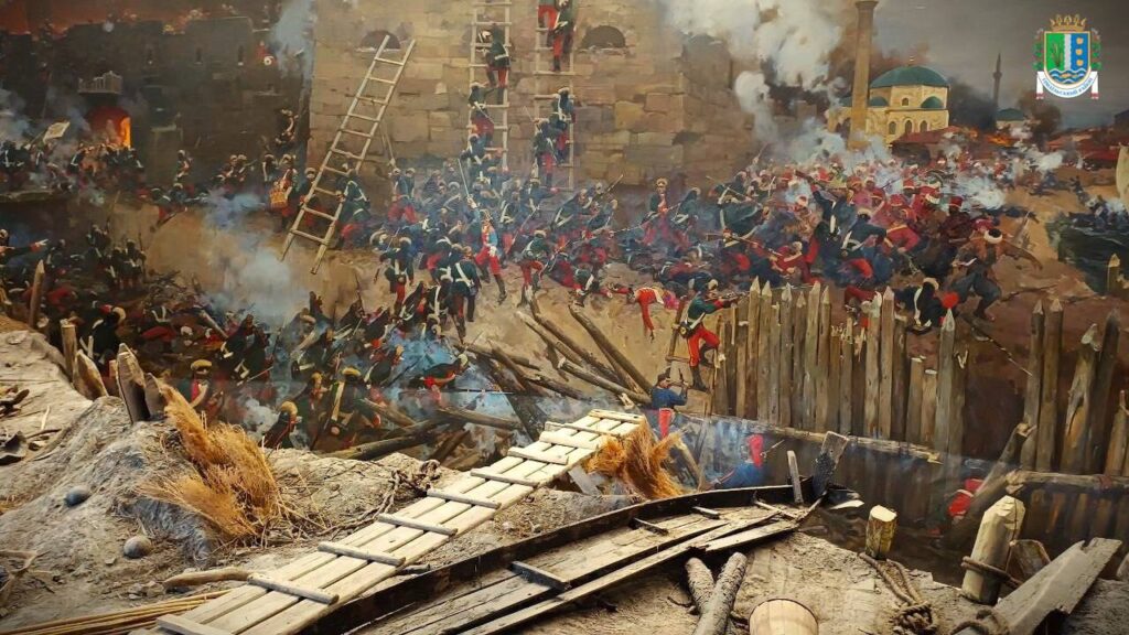 Масштабне батальне полотно з елементами військової амуніції і фортифікаційних споруд та аудіосупроводом відтворює один з найвизначніших моментів історії міста, коли воно опинилося на перетині сфери впливу двох найбільших імперій Східної Європи кінця ХVІІІ століття.