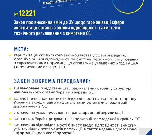 Основна мета – гармонізація українського законодавства у сферах технічного регулювання та акредитації з нормами ЄС.