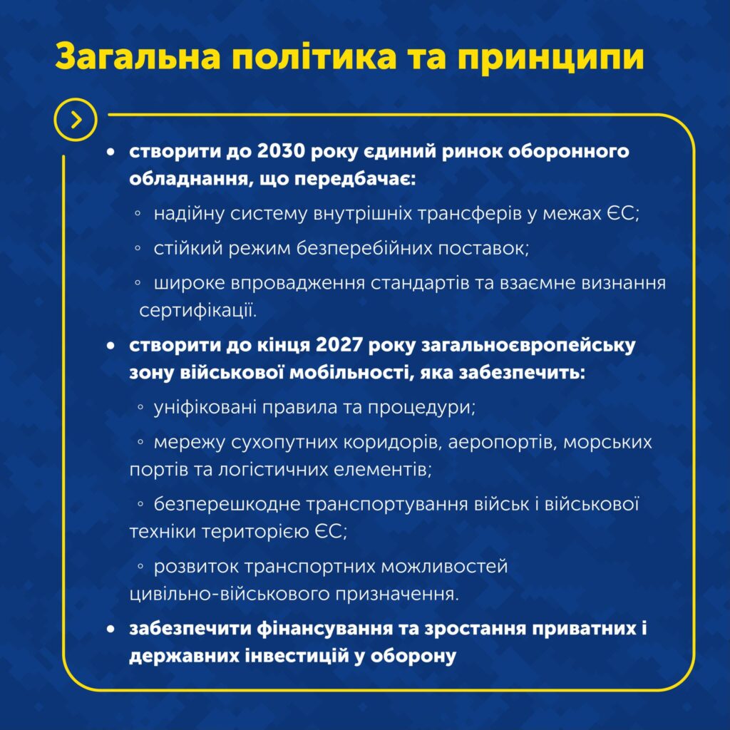 Мета – підвищити безпеку ЄС, водночас зміцнивши оборонну промисловість та підтримку України.